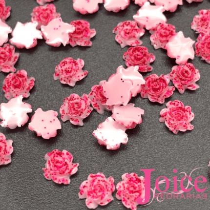 Mini Rosa 3D-5mm Resina Com Glitter C/5000 Unidades