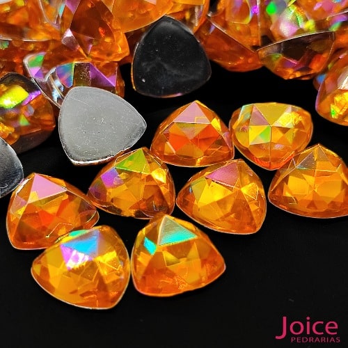 Chaton Triângulo Diamante Com AB Acrílico Base Reta 12mm x 12mm C/1000-Unidades